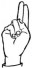 На ћирилици написано ПЕРИША ВУКОЈЕВИЋ састоји се из 15 слова [?]. Исписано ћириличном једноручном азбуком за глувонеме: